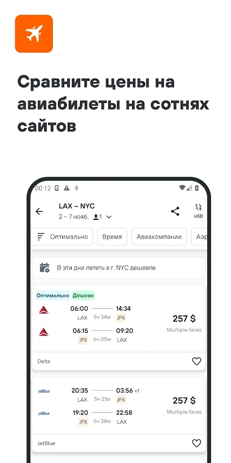 Выберите оптимальный рейс: сравните предложения от сотен авиакомпаний и агентств и отфильтруйте всё ненужное.