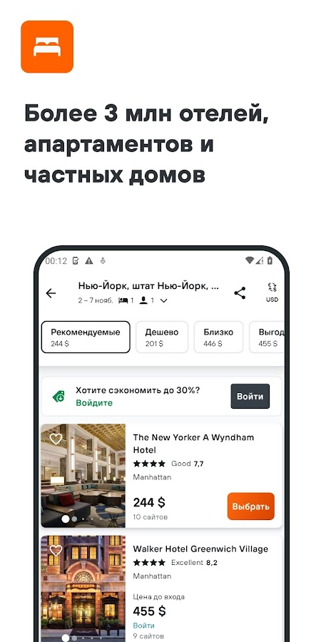 Бронируйте по выгодным тарифам только для мобильного и получайте эксклюзивные скидки для пользователей приложения. Благодаря уведомлениям о цене вы не упустите момент, когда интересующий вас отель, автомобиль или авиабилеты подешевеют.