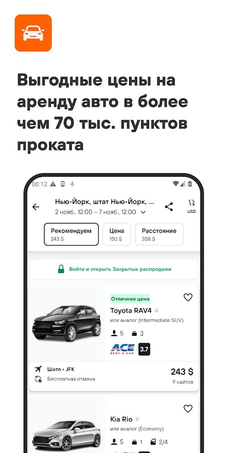 Найдите идеальную машину в аренду в одном из более чем 70 000 пунктов проката, представленных на KAYAK. Чтобы бронировать без риска, воспользуйтесь фильтром «Бесплтаная отмена».