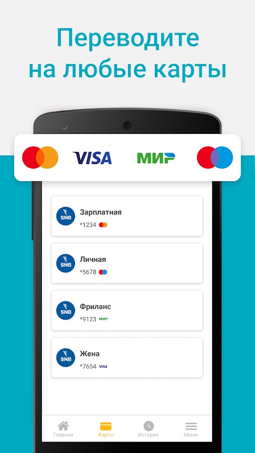 Переводите деньги с карты на карту в вашем смартфоне.