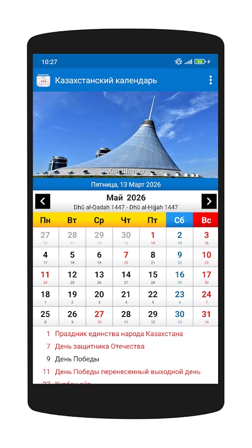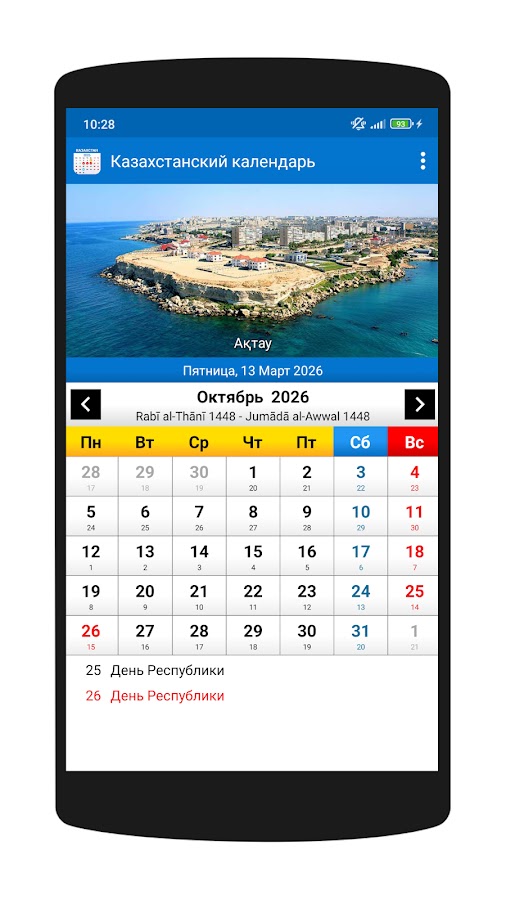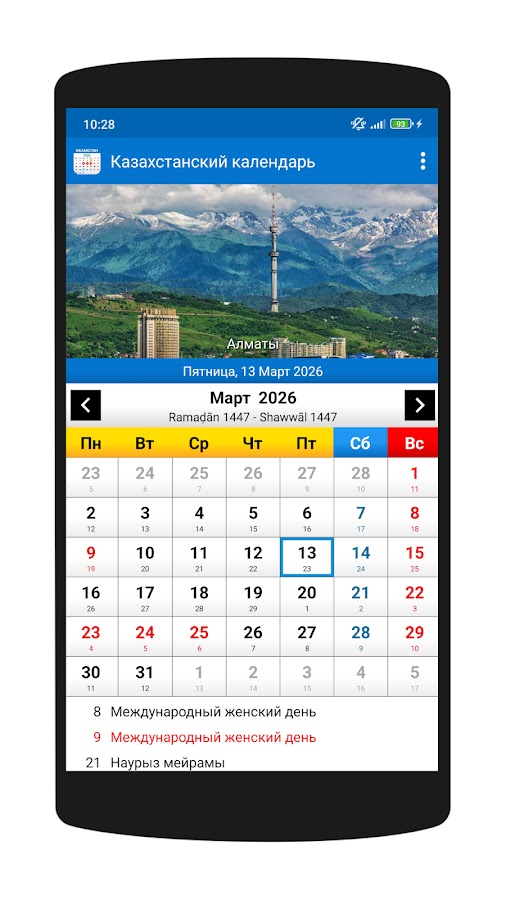Это приложение-календарь Казахстан очень похож на календарь, который вы, возможно, увидите на стене. Оно всеемлющее и актуальное, содержит все: от национальных праздников до важных событий, связанных с Казахстаном.