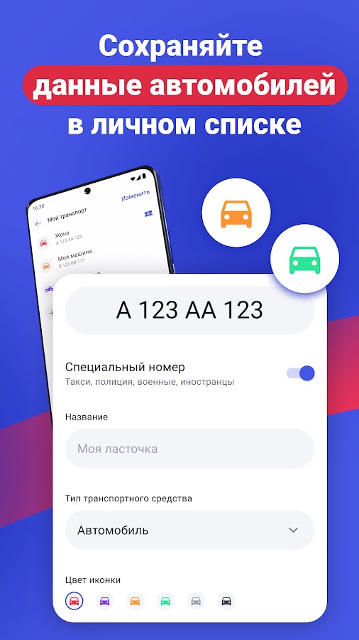 — список вашего транспорта: удобно управляйте информацией о своих автомобилях.