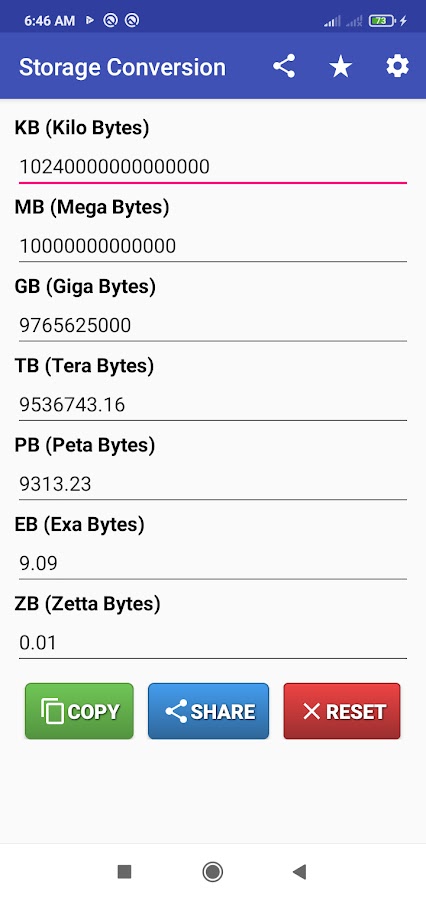 Добро пожаловать в наше мощное приложение «Конвертер байтов»! Легко конвертируйте значения между килобайтами, мегабайтами, гигабайтами, терабайтами, петабайтами, эксабайтами и зетта-байтами всего несколькими нажатиями. Делитесь или копируйте преобразованные значения без особых усилий, что делает его универсальным инструментом для решения всех ваших задач по размеру данных.