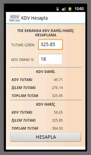 Информация о KDV Hesapla — kdv dahil hariç