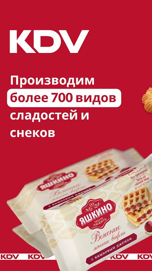 Холдинг KDV — крупнейший в России производитель кондитерских изделий и снеков. У холдинга полностью своя инфраструктура: от распределительных центров до автопарка. Это позволяет держать цены на демократичном уровне и всегда доставлять только свежие продукты.