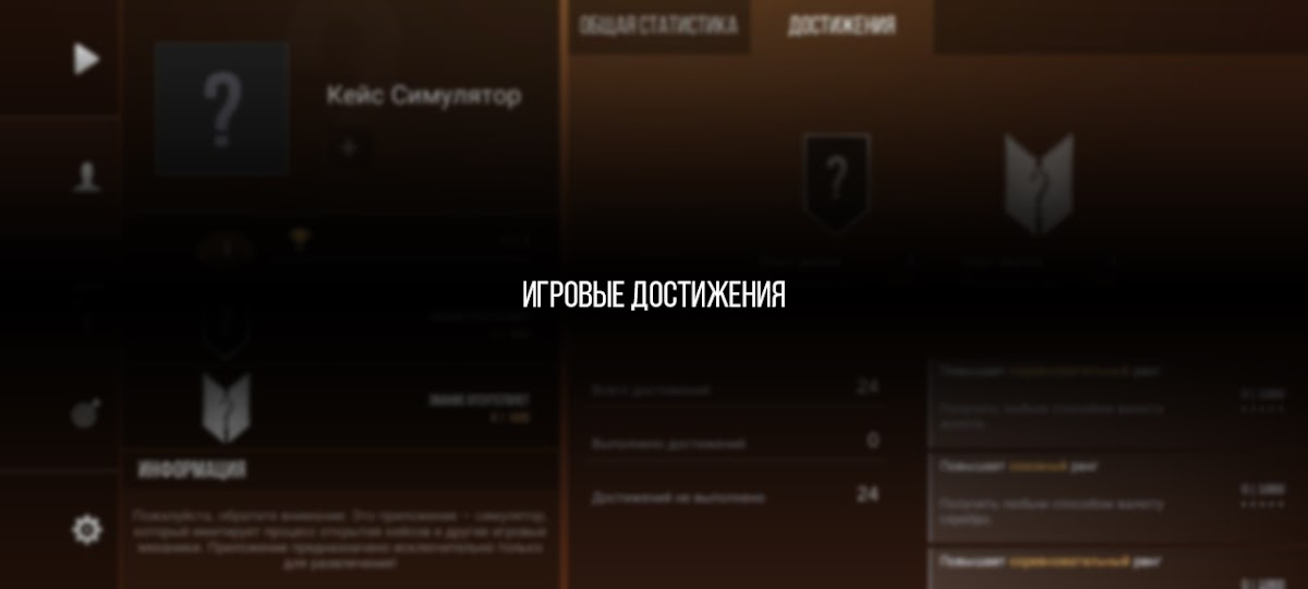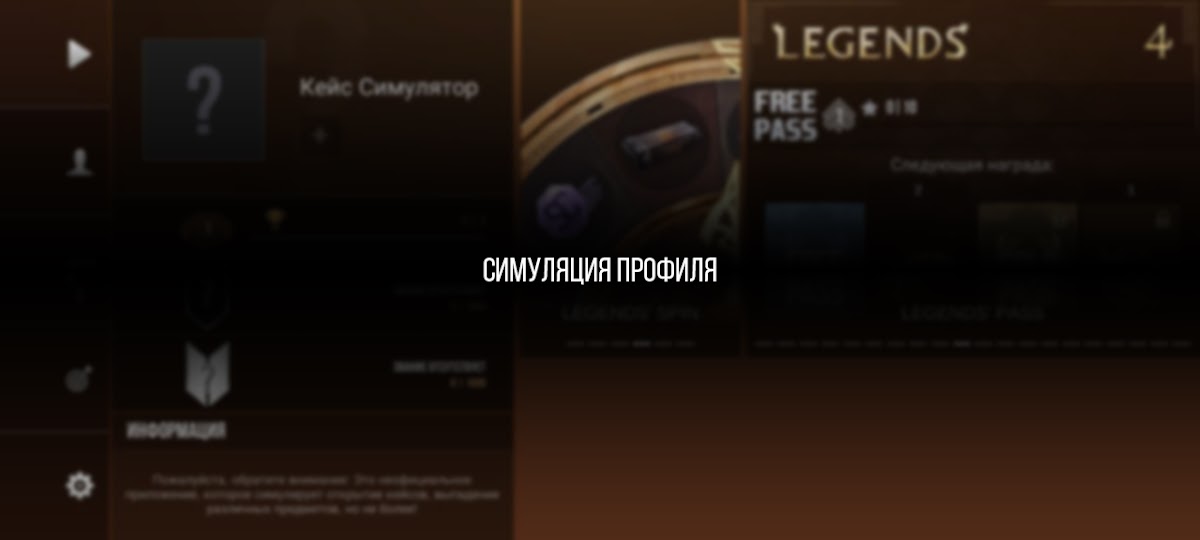 Пожалуйста, обратите внимание: Все ссылки на торговую марку «Standoff» в описании этого приложения предназначены исключительно для идентификации его потенциальными пользователями. Это неофициальное приложение, которое симулирует открытие кейсов и выпадение различных предметов, но не предоставляет никакой другой функциональности, связанной с игрой «Standoff 2». Использование промо-кодов из симулятора, вывод скинов или любых других предметов в игру «Standoff 2» невозможно!