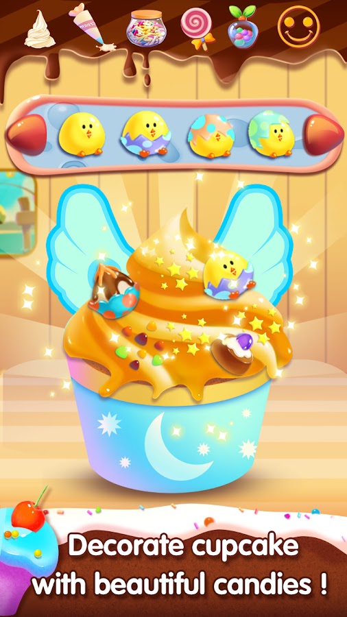 ☆ Decorate your tasty cupcake with candy, lollipop, sprinkles, ice cream, strawberry, cookie and other delicious ingredients.