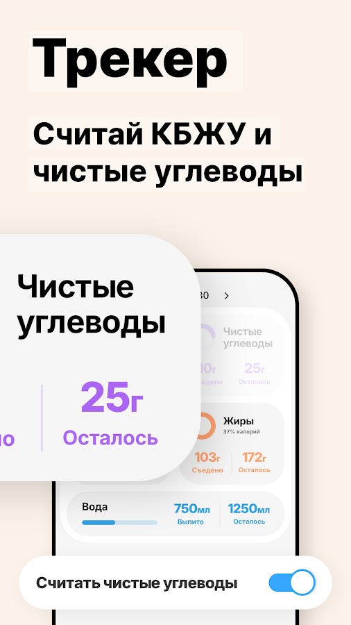 — установить и персонализировать цели потребления макронутриентов (белки, жиры, углеводы) конкретно под ваше телосложение и уровень активности;