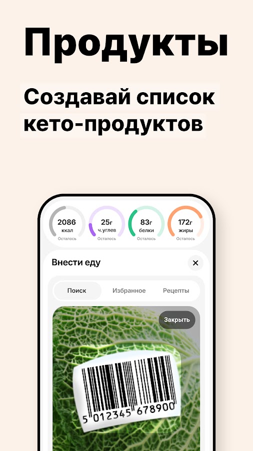 — сканирование штрих-кодов для быстрого поиска продуктов;