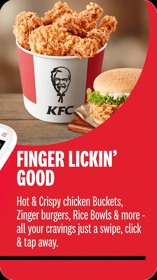 Хотите хрустящей корочки? Приложение KFC предлагает вам скидки, скорость и бесплатный бургер Zinger для начала. Это не просто еда — это атмосфера.