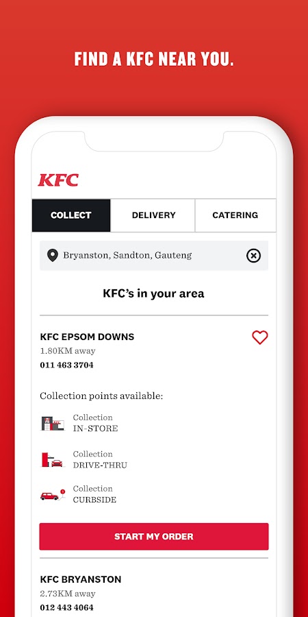 — Коллекция обочины — закажите онлайн, припаркуйтесь в специальном отсеке в ресторане KFC, и кто-то доставит ваш заказ KFC прямо к вашей машине. Доступен в более чем 50 ресторанах.