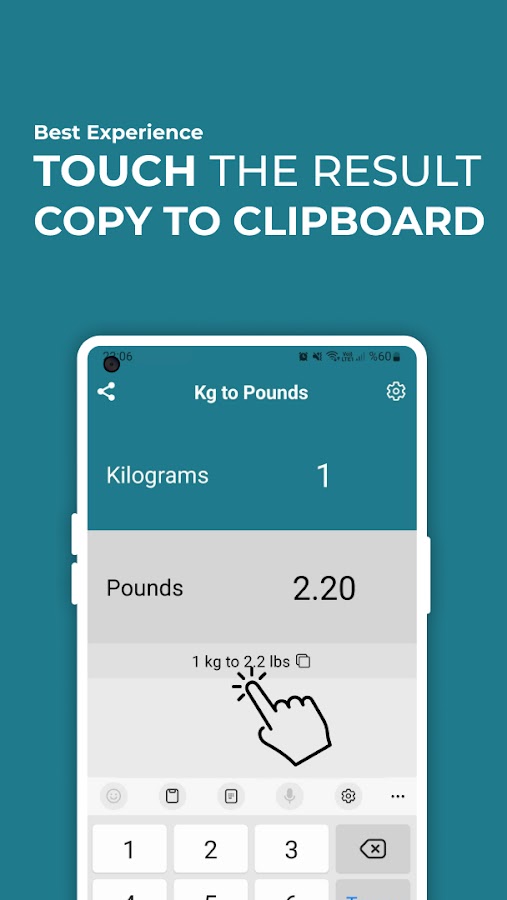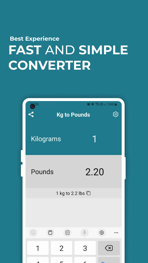 Килограммы в фунты: просто коснитесь поля ввода кг, введите свое число и наблюдайте, как оно быстро конвертируется в фунты.