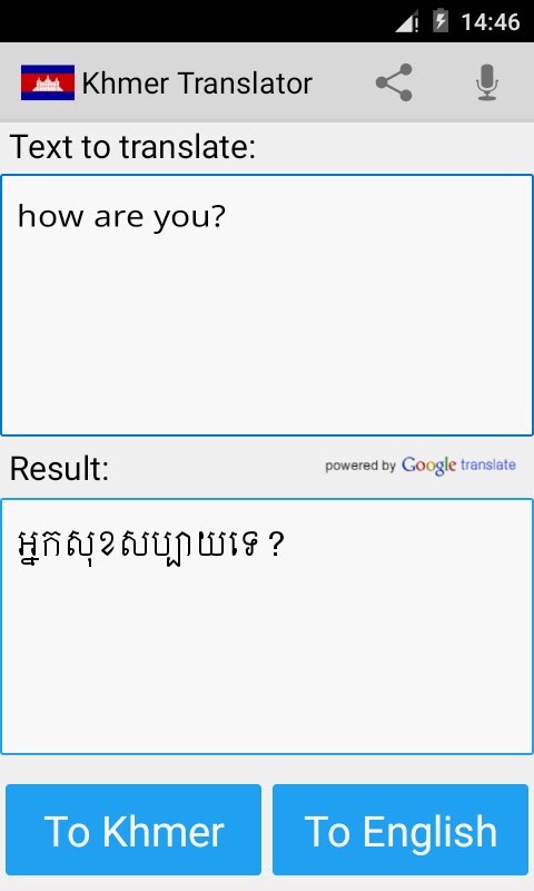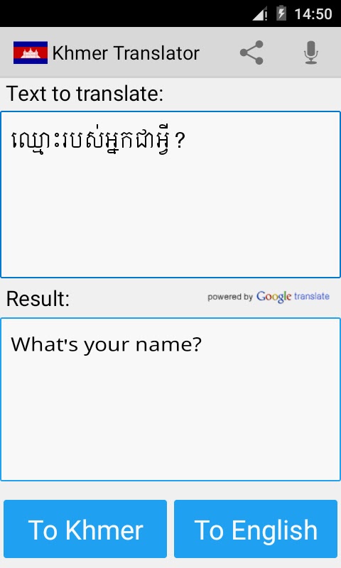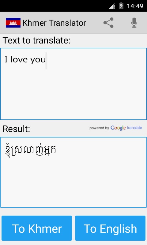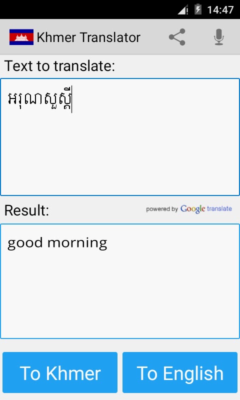Это приложение может переводить слова и тексты с английского на кхмерский и с кхмерского на английский.