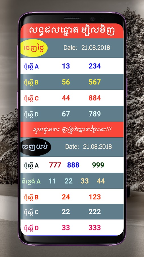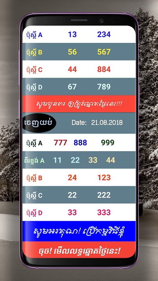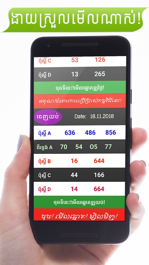 Это приложение позволяет каждому ежедневно узнавать результаты лотереи на кхмерском и венгерском языках.