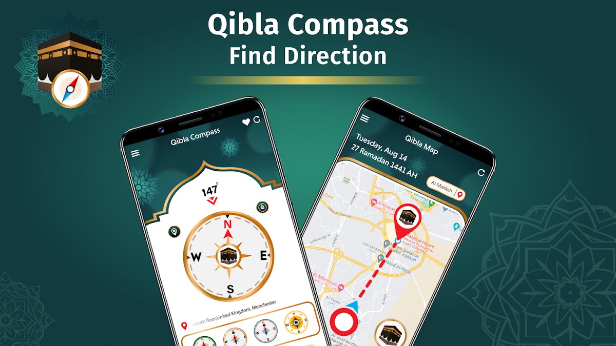 * Приложение Qibla Finder с Athan, Salah, временем молитвы и компасом направления в приложении Qibla для мусульман