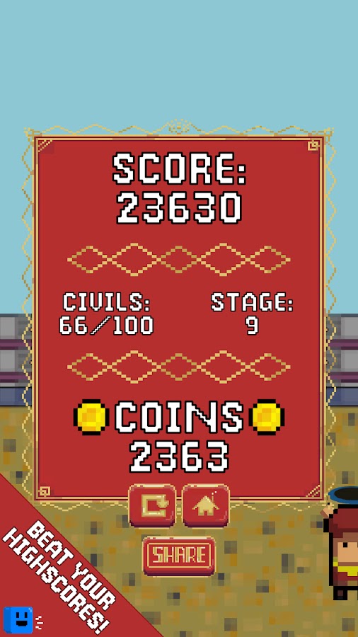 • Разблокируйте новых персонажей и батуты, собирая монеты.