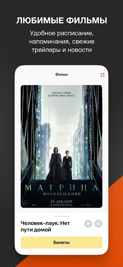 – удобное расписание для любимых кинотеатров и фильмов.
