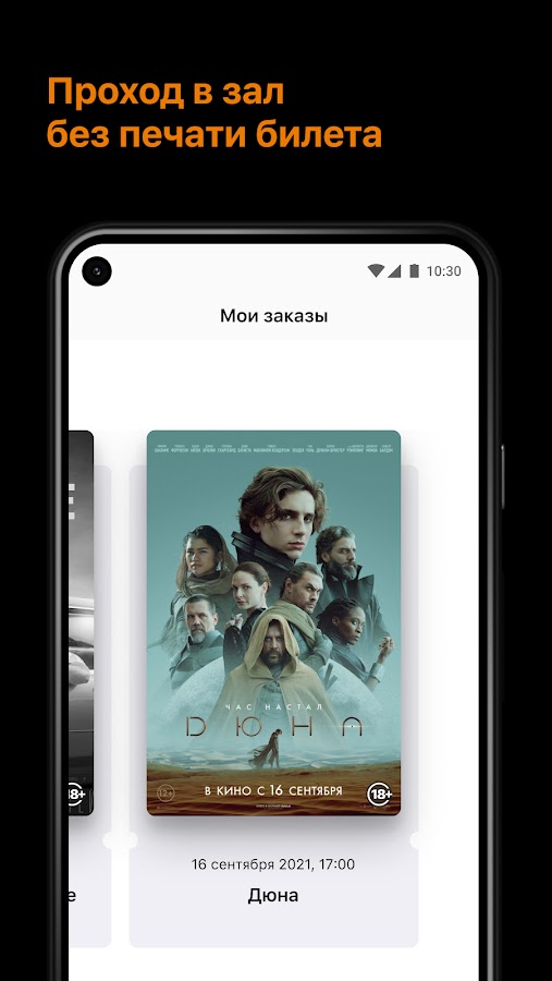 Забудьте о бумажных билетах! Получайте электронные билеты прямо в приложении. Просто предъявите код на экране вашего устройства при входе в кинозал.