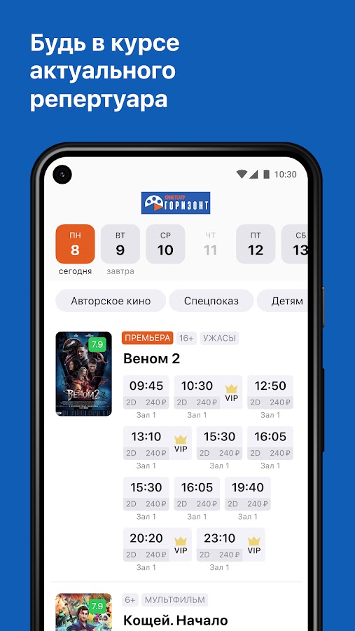 Скачайте приложение Кинотеатр Горизонт, Коломна для Android бесплатно - последняя версия (2.20.0) уже доступна для установки на ваш телефон или планшет.