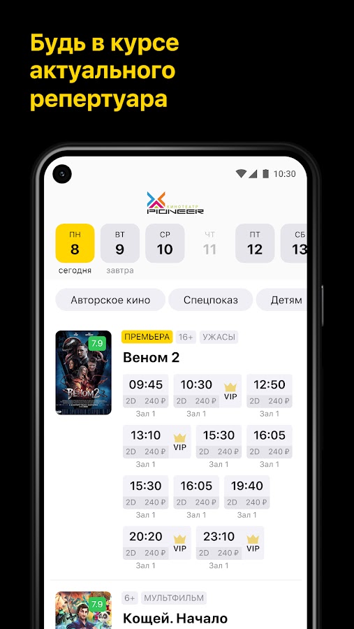 Скачайте приложение Кинотеатр Пионер, г. Барнаул для Android бесплатно - последняя версия (2.20.0) уже доступна для установки на ваш телефон или планшет.