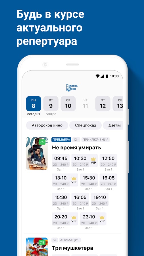 Скачайте приложение Кинотеатр Рояль-Вио, г. Черепо для Android бесплатно - последняя версия (2.20.0) уже доступна для установки на ваш телефон или планшет.