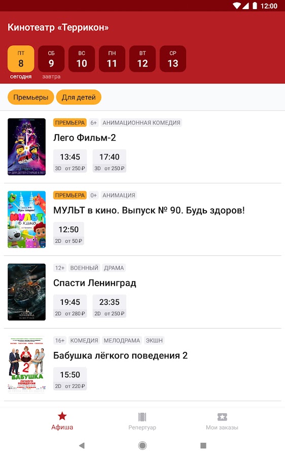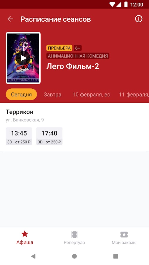 Мобильное приложение кинотеатра «Террикон» поможет вам подобрать удобный сеанс, узнать о новинках кинопроката и приобрести билеты в кино в городе Сланцы.