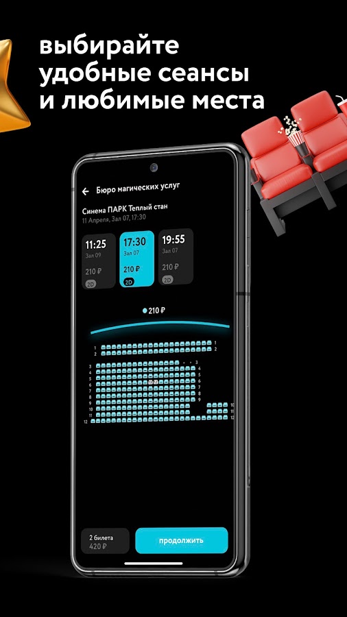 Скачивайте приложение «Кинотеатры» и покупайте билеты в кинотеатр с удовольствием!