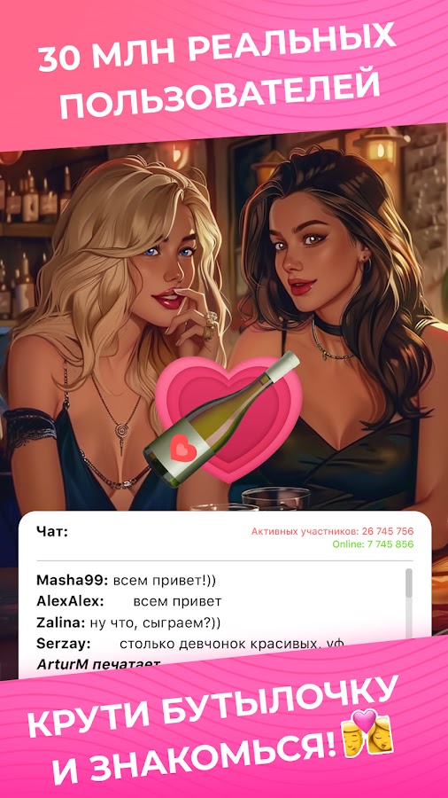 Скачайте игру Kiss me: Игра Бутылочка для Android бесплатно - последняя версия (1.2.20) уже доступна для установки на ваш телефон или планшет.