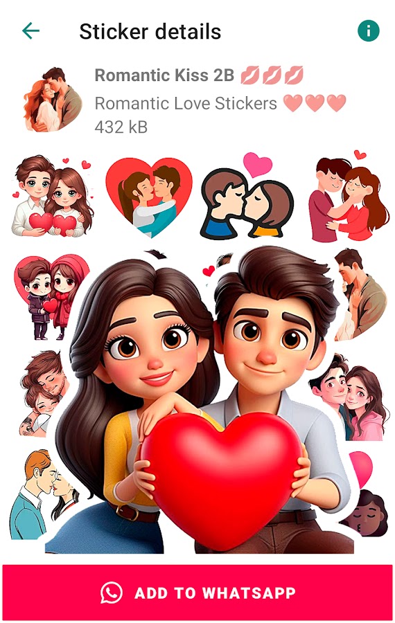 Лучшая коллекция стикеры для любовных пар WAsticker сексуальные поцелуи, и вы можете легко добавить эти романтические любовные стикеры в WhatsApp одним нажатием кнопки.