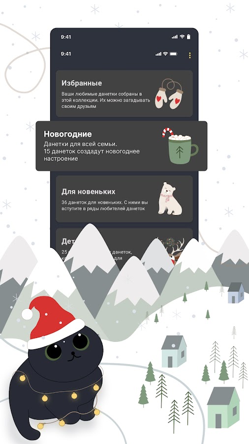 Часть данеток основаны на реальных историях, часть — выдуманные. Некоторые из них достаточно легко разгадать, а на некоторые может уйти много времени. Так что вы точно сможете подобрать для себя интересные данетки. Также добавлена коллекция для создания новогоднего настроения.