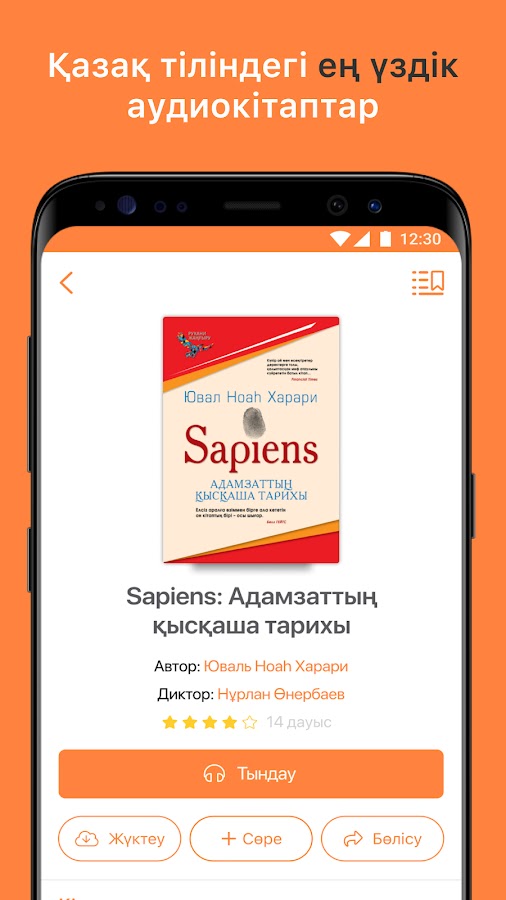 Стихи Абая и Черное слово, поэмы и переводы, романы и рассказы Мухтара Ауэзова, лучшие произведения Беймбета Майлина и Жусипбека Аймаутова – лишь часть сокровищницы в приложении. Вы можете не только читать и слушать мировые бестселлеры — «7 навыков творческих людей», «Сапиенс: Краткая история человечества» и «Дневник Анны Франк», «Магия» на казахском языке.