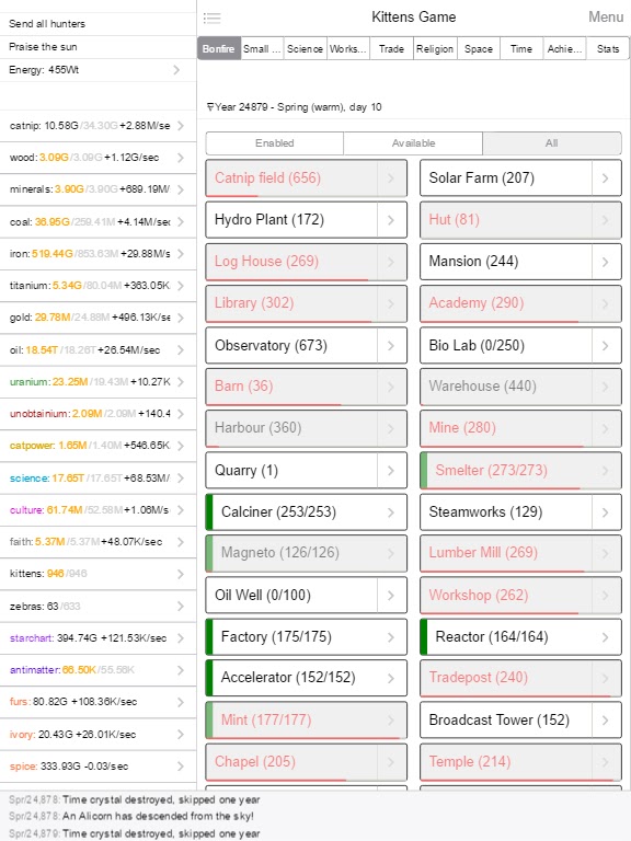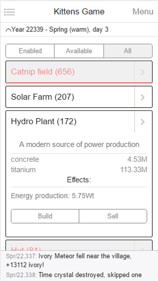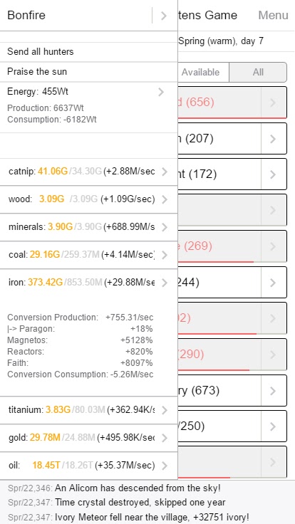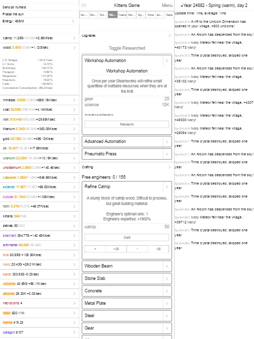 Kittens Game — это текстовая игра-симулятор деревни. Вы управляете деревней котят, которые добывают ресурсы и открывают новые технологии.