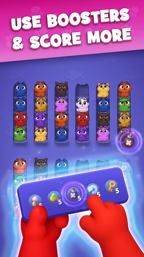 Повышайте свои навыки: Испытайте себя с помощью все более сложных головоломок, которые проверят ваш мозг. Kitty Sort: Twisted Tails — это идеальный способ отточить свой ум, весело проводя время!