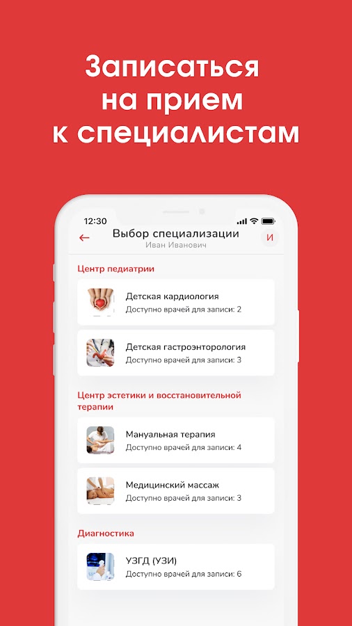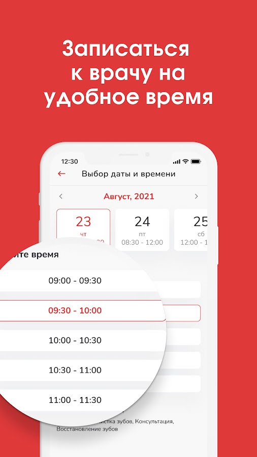Приложение предоставляет разнообразные возможности самостоятельной записи пациента на прием, просмотра и печати пациентом списка запланированных посещений, результатов анализов и рекомендаций врача.