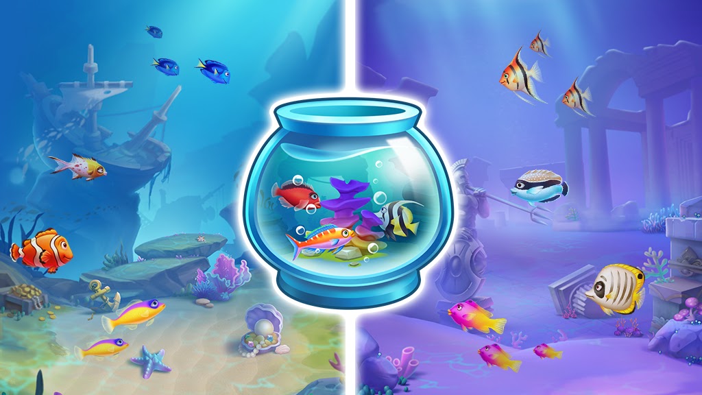 — Играйте в карты и украшайте аквариумы — Собирайте рыб и украшайте различные аквариумы, такие как Blue Depth, Emerald Reef, Atlantis, Undersea и Farm.