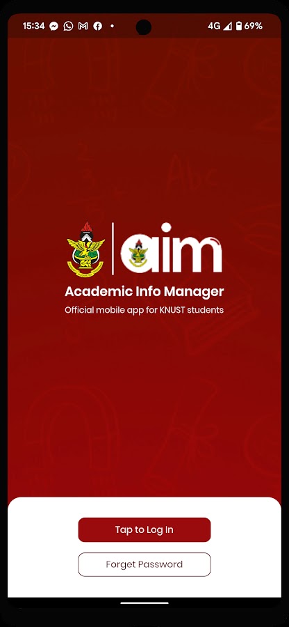 Academic Information Manager (AIM) — это официальное мобильное приложение для студентов Университета науки и технологий Кваме Нкрума. Он разработан Службой информационных технологий университета (UITS). Это мобильный компаньон студенческого онлайн-портала, который также является частью студенческой информационной системы KNUST. Его основная цель — перенести функции студенческого онлайн-портала на мобильные устройства. Ключевые функции AIM перечислены ниже.