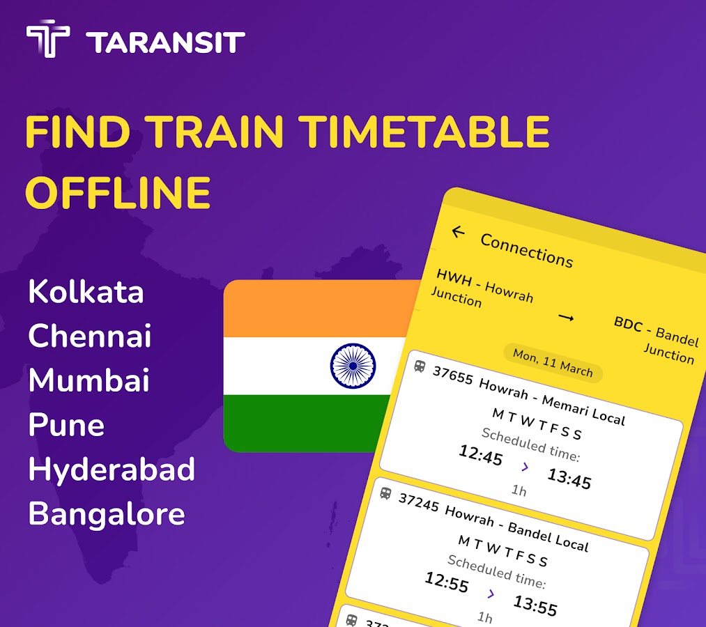 Пригородные поезда Калькутты у вас в кармане без подключения к Интернету, а это значит, что вы можете положиться на Taransit где угодно и когда угодно, ведь это бесплатное офлайн-приложение для железных дорог.