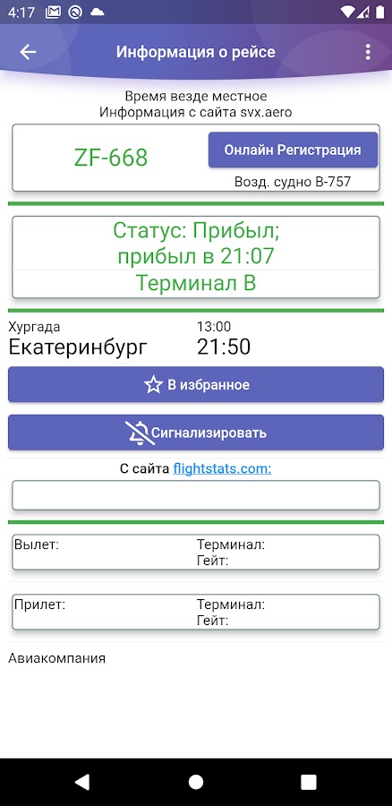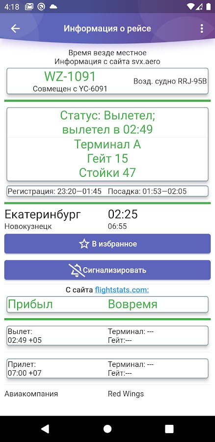 — открывать более подробную информацию о рейсе: терминал, гейт и т.п.