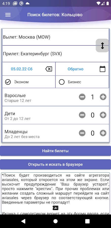 Расширенное онлайн табло вылетов/прилетов аэропорта Кольцово (Екатеринбург) и дополнительная информация для вылетающих/прилетающих/встречающих. Неофициальное приложение.