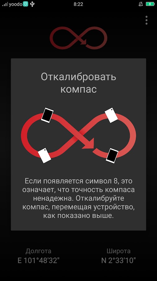 Обязательно избегайте любых магнитных помех, таких как ноутбук, другое устройство, аккумулятор, устройство при использовании компаса Эти магнитные помехи приведут к тому, что точность компаса станет ненадежной. если компас не надежен. Откалибруйте устройство, переместив устройство в форму [8] (как показано выше). Убедитесь, что нет магнитных помех.