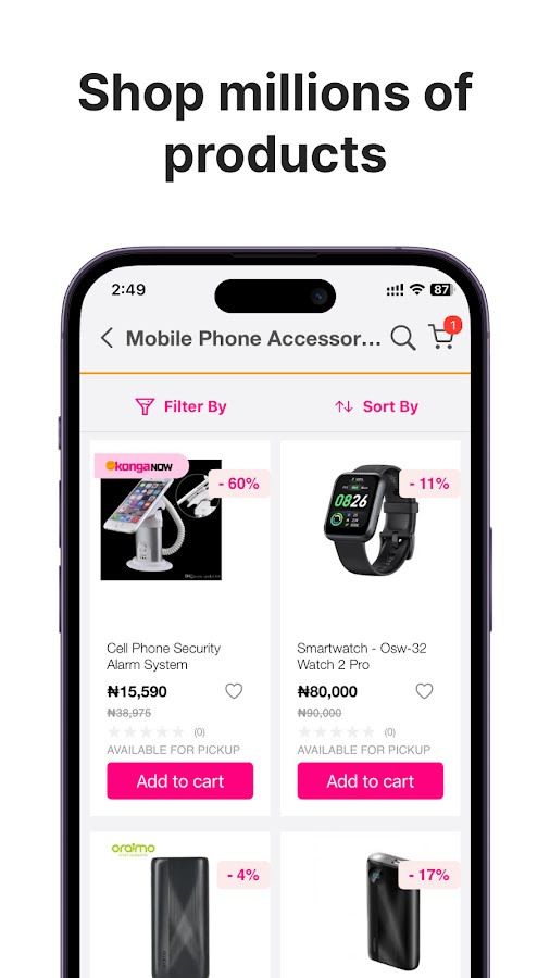 Вы можете выбрать из нашего полного спектра телефонов, планшетных ПК, игр, компьютеров, одежды и косметических продуктов от премиума и любимых брендов. Посмотреть некоторые из популярных категорий. Вы можете делать покупки с Mobile App наслаждаться лучшими скидками на ежедневных сделках. Вы также можете получить свою семью и друзей, чтобы насладиться лучшие предложения онлайн, а также. Со всем удивительным приложение только продажи, то лучше всего вам скачать Konga приложение, так что вы не пропустите лучшие предложения онлайн.