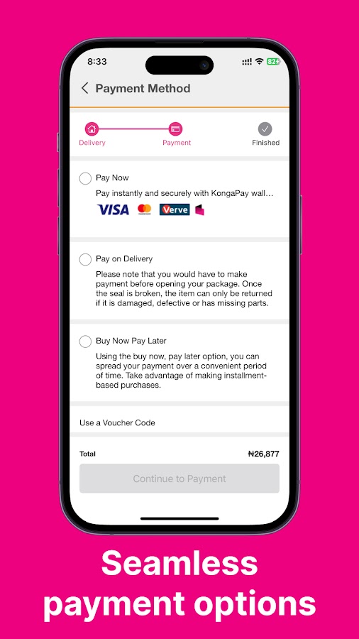 Безопасность: Konga Mobile App является надежным и безопасным. Все ваши платежи будут по-прежнему надежно обработаны независимо от того, если вы используете приложение для мобильных телефонов.