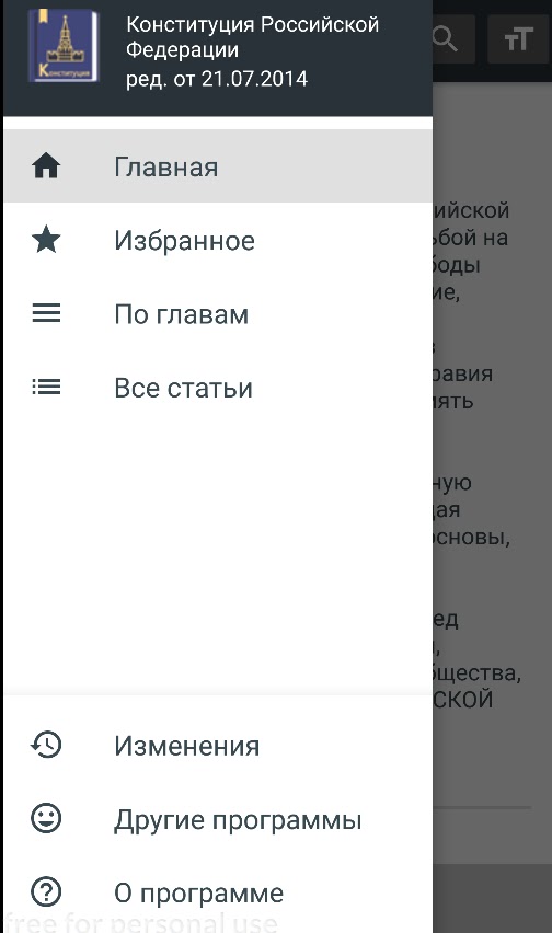 Скачайте приложение Конституция РФ для Android бесплатно - последняя версия (0.60) уже доступна для установки на ваш телефон или планшет.