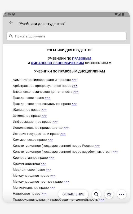 Ориентироваться в документах помогут оглавление и поиск по тексту.
