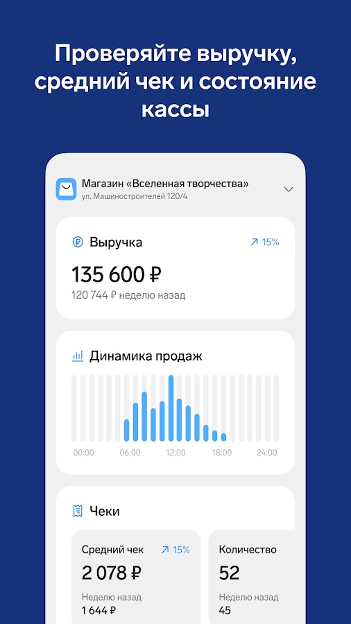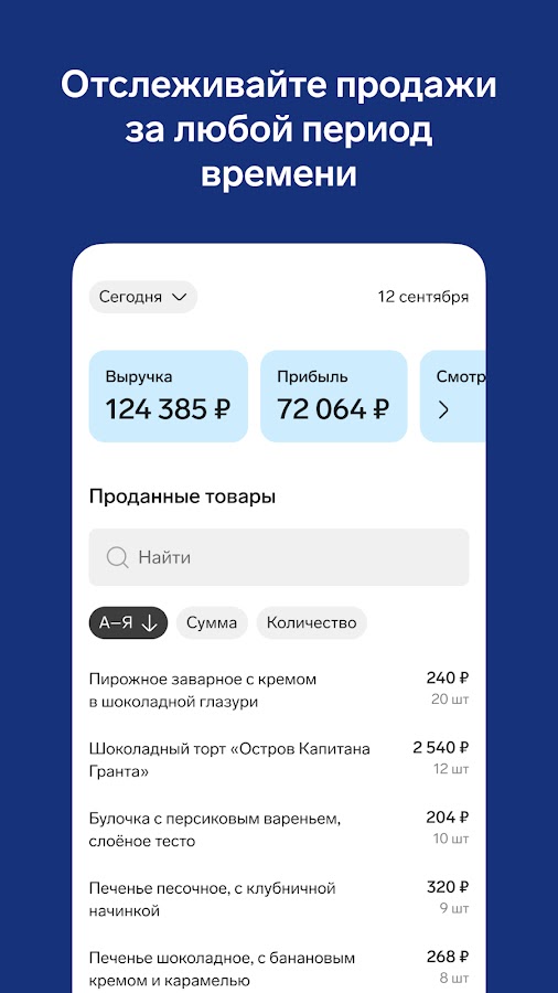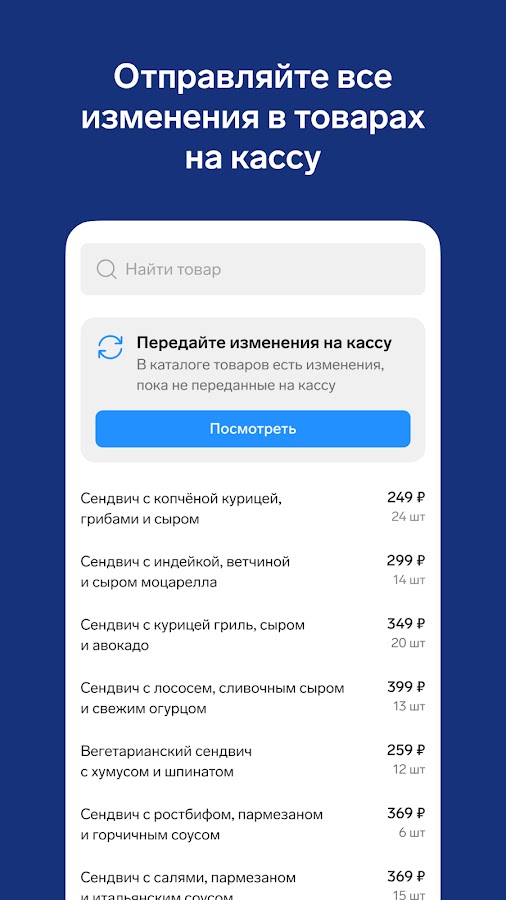Приложение покажет сводные финансовые показатели за период, поможет с детализацией до конкретных продаж или возвратов. Вы сможете внести изменения в товар или блюдо и актуализировать данные на кассе. Для всех блюд, товаров или ингредиентов есть информация об актуальном остатке и цене закупки.