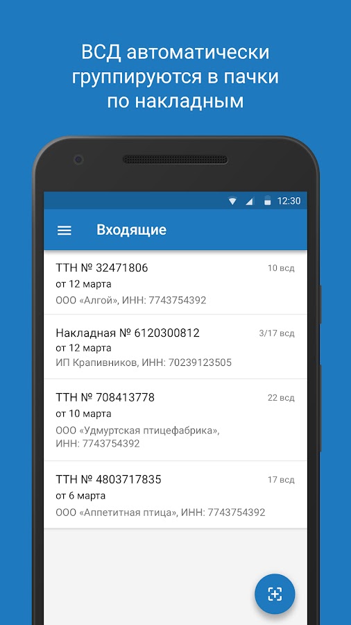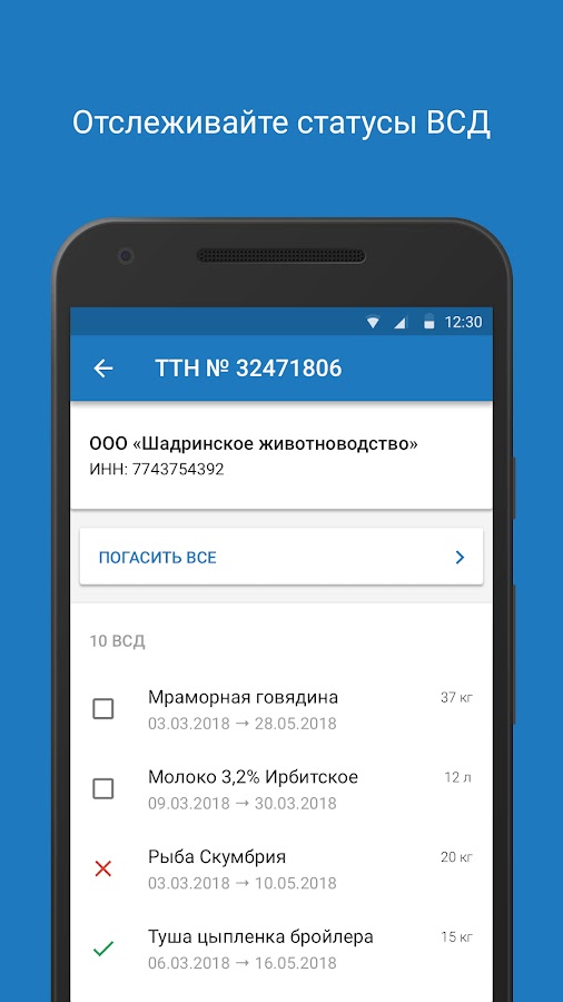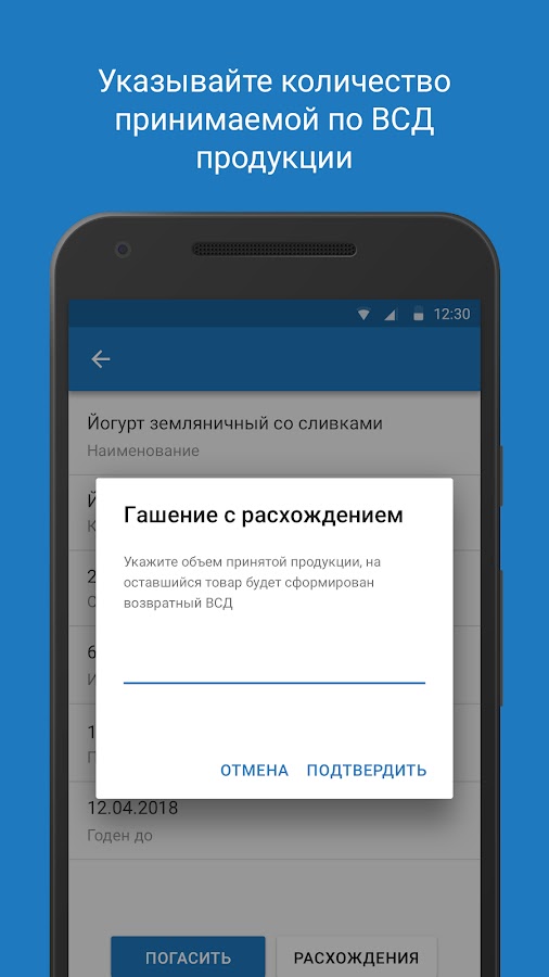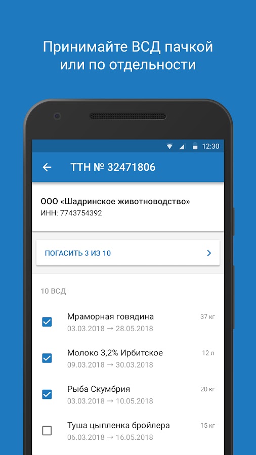 • принимать продукцию не полностью: приложение само создаст возвратные ВСД