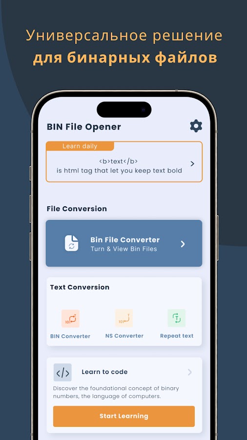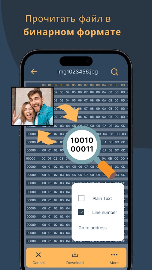 Конвертер файлов для открытия бинарных файлов, двоичный транслятор и конвертер системы счисления — идеальный компаньон для профессионалов, разработчиков, студентов и энтузиастов. Он предоставляет множество мощных функций для работы с двоичными данными, преобразования файлов и легкого переключения между различными системами счисления. Загрузите приложение прямо сейчас и откройте мир возможностей для преобразования файлов, преобразования текста в двоичный код и изучения системы счисления.
