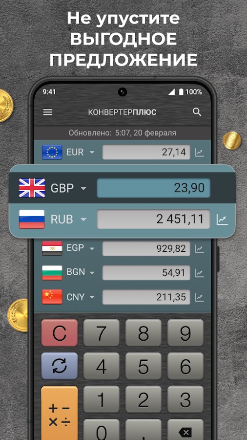 Скачайте приложение Конвертер Валют Плюс для Android бесплатно - последняя версия (3.2.0) уже доступна для установки на ваш телефон или планшет.