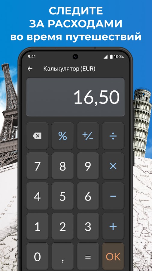 Бесплатный Конвертер Валют Плюс, разработанный создателями Калькулятора Плюс, — это простой конвертер для перевода курсов валют, который сообщит тебе, на что расчитывать при обмене денег. Конвертер Валют регулярно обновляет курсы валют и выполняет автоматический пересчет по курсу AccuRate™. Встроенный калькулятор с процентами незаменим при шоппинге и поможет подсчитать чаевые и скидки во время путешествий за границей.