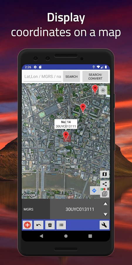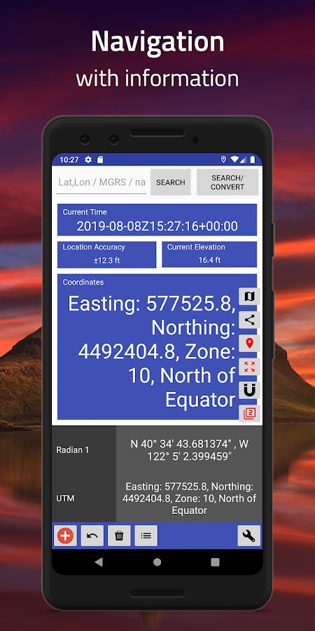 Это приложение не только отображает простые данные о долготе и широте; оно также поддерживает различные форматы и системы координат, такие как универсальная поперечная меркаторская система координат (UTM), военная система координат сетки (MGRS) и мировая географическая система координат (Georef).